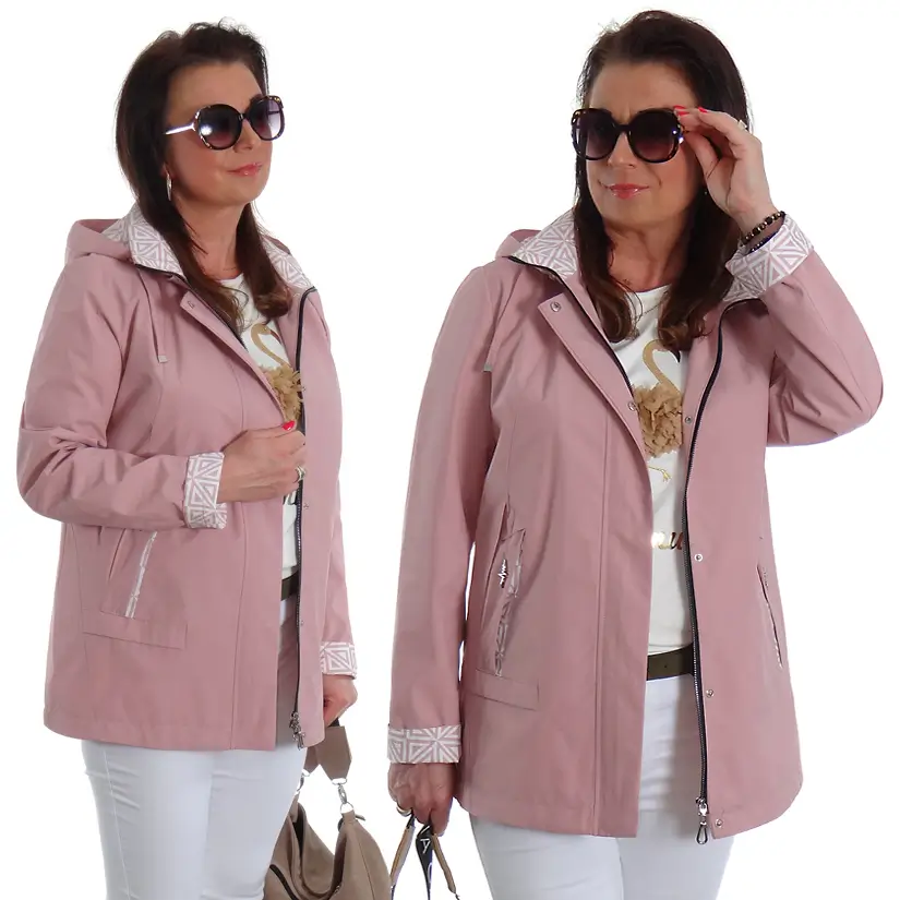 Nejmódnější pastelové barvy této sezóny. Lehká jarní bunda, podšitá větrovka s odepínací kapucí. Zapíná se na zip a řadu patentek skrytých pod klopou. Klasický styl vyrobený z voděodolného a větruodolného materiálu. Zdobené kontrastními vsadkami a jemnými švy. Dvě praktické kapsy jsou bez zapínání. Na kapuci má stahovací pásky pro tvarování tvaru. Jarní bunda, ultralehká, nezateplená. Ideální pro ty, kteří sledují módní trendy. Nové bundy přímo od výrobce s visačkami a v originálním balení. Složení: 100% polyester.