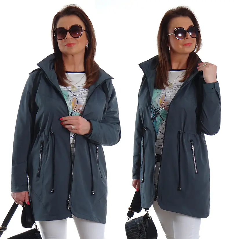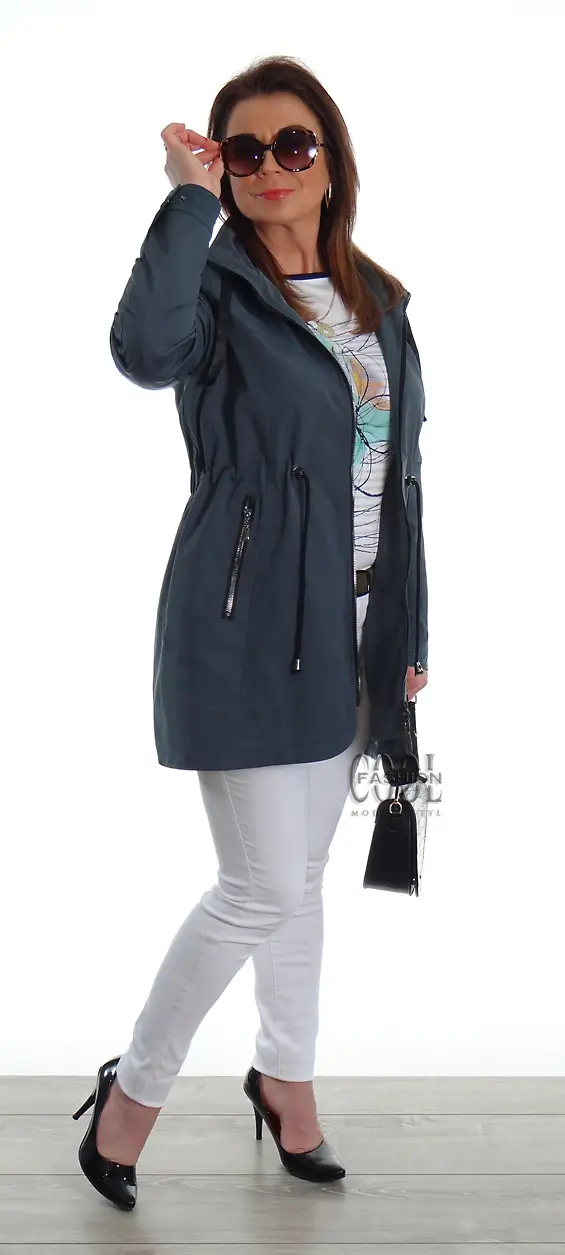 Podšitá jarní parka s odnímatelnou kapucí a zapínáním na zip. Má dvě hluboké kapsy na zip a jednu vnitřní kapsu. Stahovací šňůrky v kapuci a pase zajišťují lichotivý střih. Manžety jsou nastavitelné. Parka není zateplená. Vhodná na jaro, chladné léto a podzim. Velmi lehká a pohodlná.