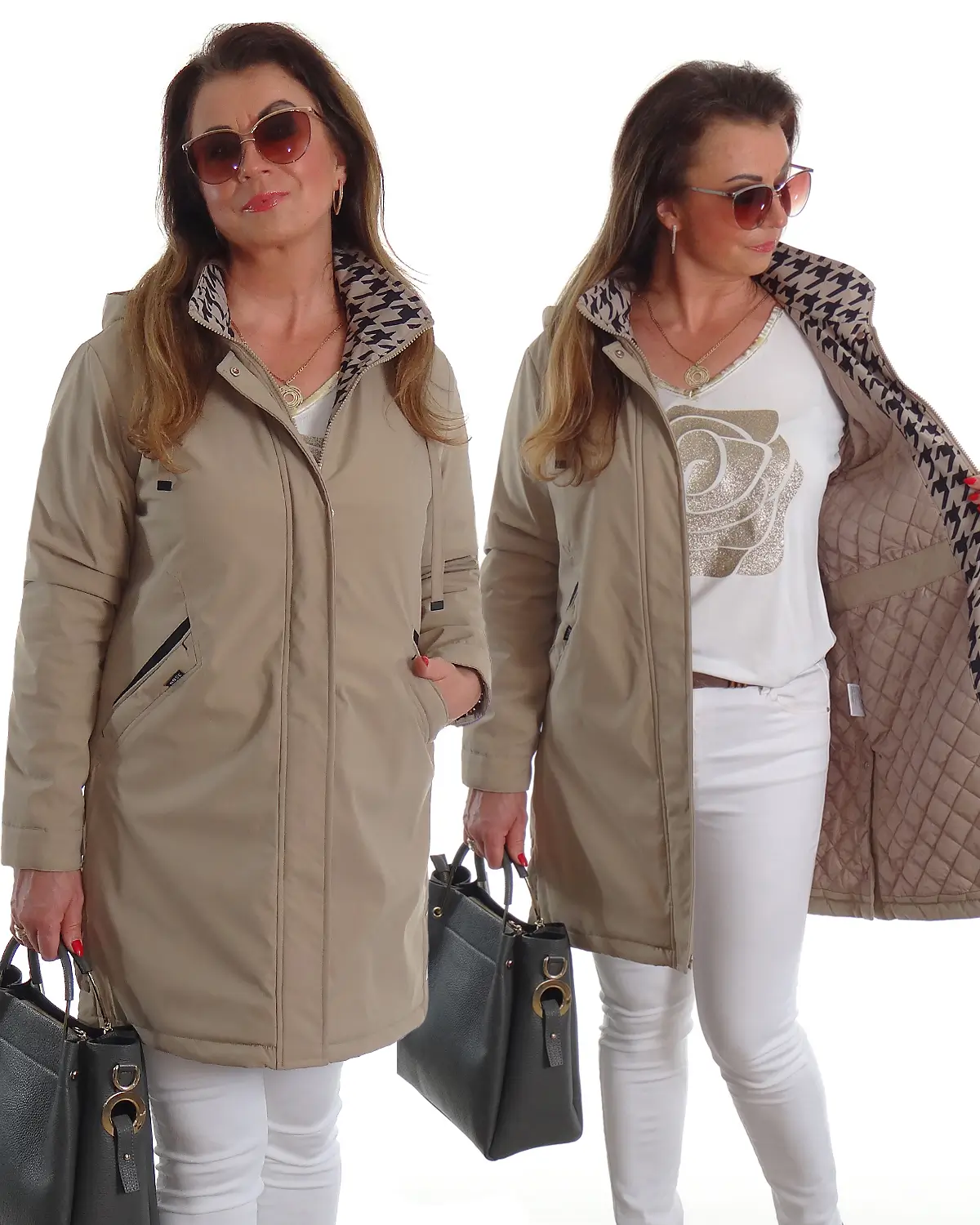 Zateplený kabát s prošívanou podšívkou a odnímatelnou kapucí. Má dvě funkční kapsy na zip a jednu vnitřní kapsu. Kapuce má stahovací šňůrky pro pohodlnější nošení. Kabát je lehce zateplený, takže je vhodný na jarní a podzimní nošení. Boční patentky umožňují širší střih. Vynikající kvalita, ultralehké a pohodlné. Nové kabáty přímo od výrobce s visačkami a v originálním balení.