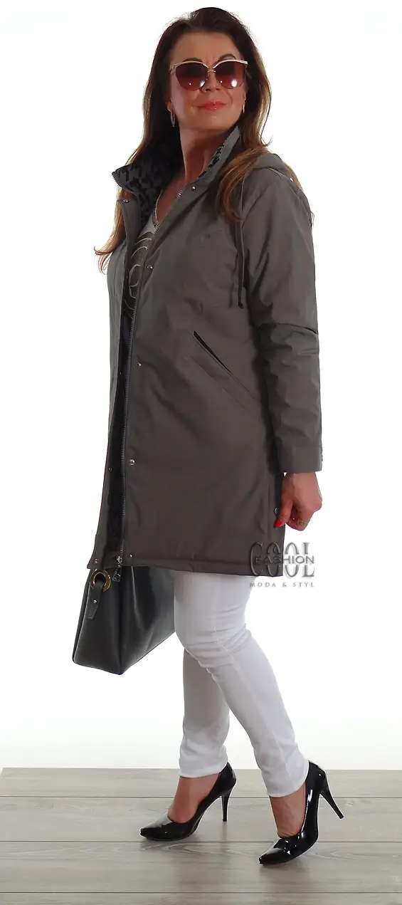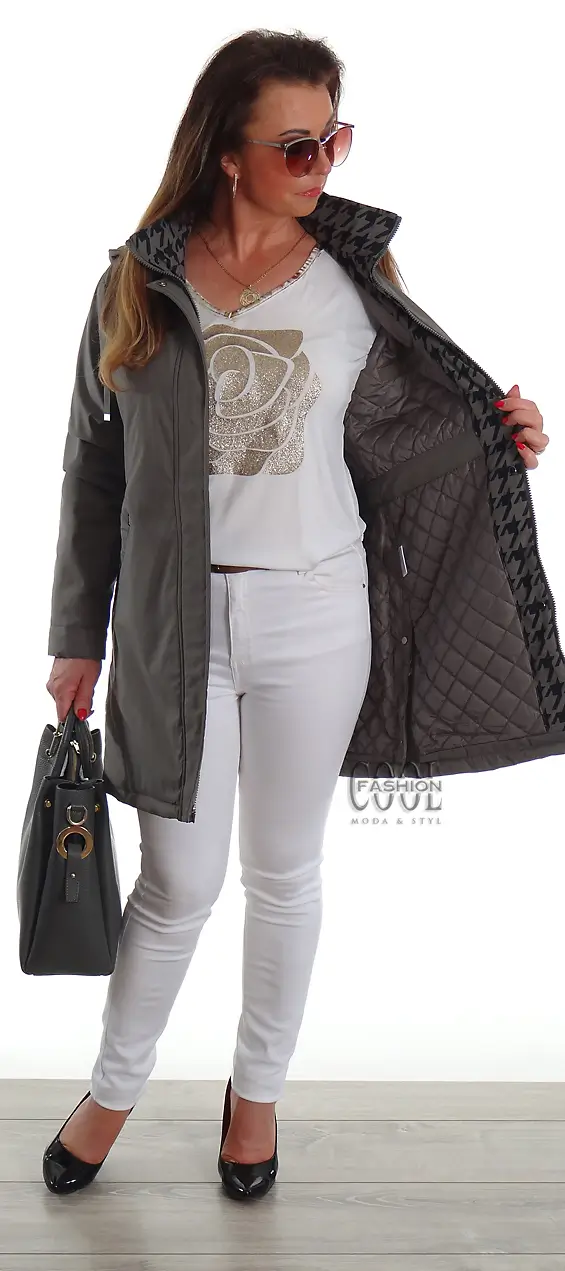 Zateplený kabát s prošívanou podšívkou a odnímatelnou kapucí. Má dvě funkční kapsy na zip a jednu vnitřní kapsu. Kapuce má stahovací šňůrky pro pohodlnější nošení. Kabát je lehce zateplený, takže je vhodný na jarní a podzimní nošení. Boční patentky umožňují širší střih. Vynikající kvalita, ultralehké a pohodlné. Nové kabáty přímo od výrobce s visačkami a v originálním balení.