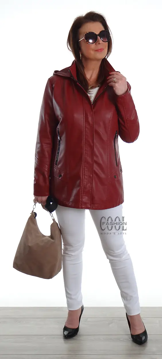 Kožená bunda s kapucí VENIX bordó