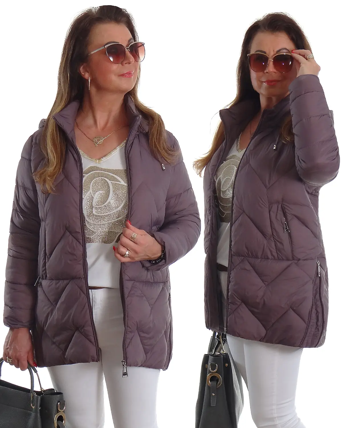 Delší přechodná bunda s odnímatelnou kapucí a prodlouženými zády. Bunda je podšitá a lehce zateplená, takže je vhodná na jarní a podzimní nošení. Má dvě skryté kapsy na zip. Kapuce má stahovací šňůrky pro přiléhavější střih. Boky jsou nastavitelné zipem. Je velmi pohodlná na nošení, ultralehká a praktická. Ideální pro milovníky módy. Bundy jsou nové, přímo od výrobce, s visačkami a v originálním balení.